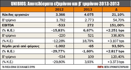 UNIBIOS(απάντηση): Η καθαρή θέση των μετόχων της είναι 10,77 εκατ. ευρώ. Διαρκώς σε ζημίες που στο 9μηνο του 2012 ανήλθαν στα 1,4 εκατ. ευρώ.Τα ebitda αρνητικά στις 618.000 ευρώ. Δεν πιστεύουμε να έχει εμφανίσει θετικό αποτέλεσμα στη τελευταία 10ετία τουλάχιστον...