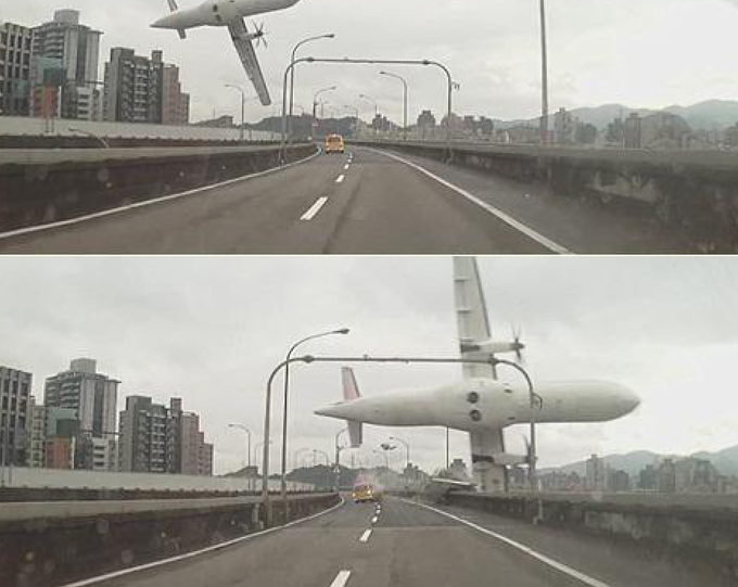 Crazy, the wing of #TransAsia #GE235 clipped a taxi cab