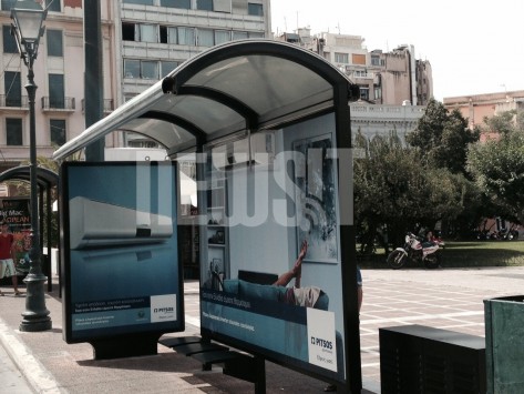 Αυτή είναι μια από τις "έξυπνες" στάσεις της ΟΣΥ που λειτουργούν πιλοτικά σε σύμπραξη με ιδιωτικές εταιρείες που κάνουν διαφήμιση στα προϊόντα τους. Σύντομα οι "στάσεις δροσιάς" θα επεκταθούν και σε άλλες περιοχές της Αττικής.